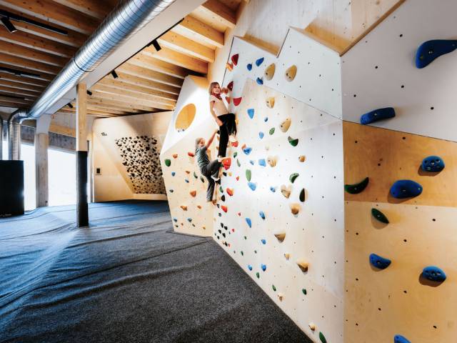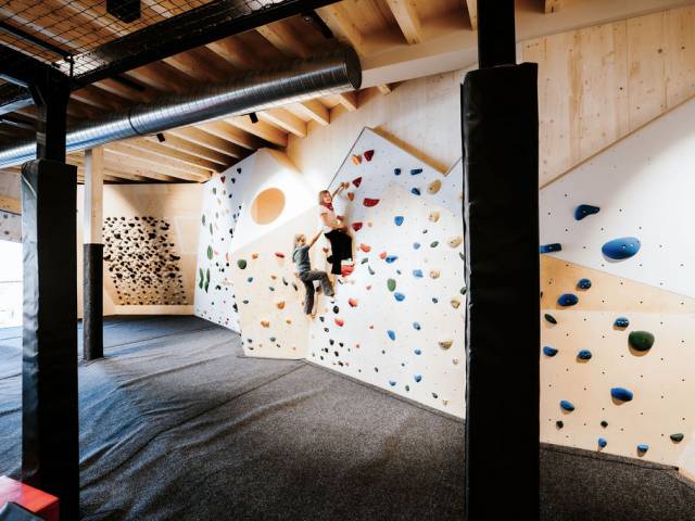 Für alle Kletterfans ist unsere große Boulderwand ein absolutes Highlight! Mit abwechslungsreichen Routen und verschiedenen Schwierigkeitsgraden könnt ihr eure Grenzen testen und neue Klettererfahrungen sammeln – egal, ob ihr Anfänger oder Profis seid.