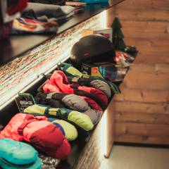 Den Skiverleih findet ihr im Untergeschoss unseres Hotels, direkt neben dem Skidepot – in dem jedes Zimmer einen eigenen beheizten Spind hat.
