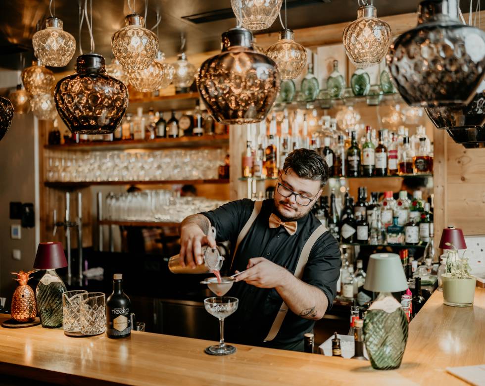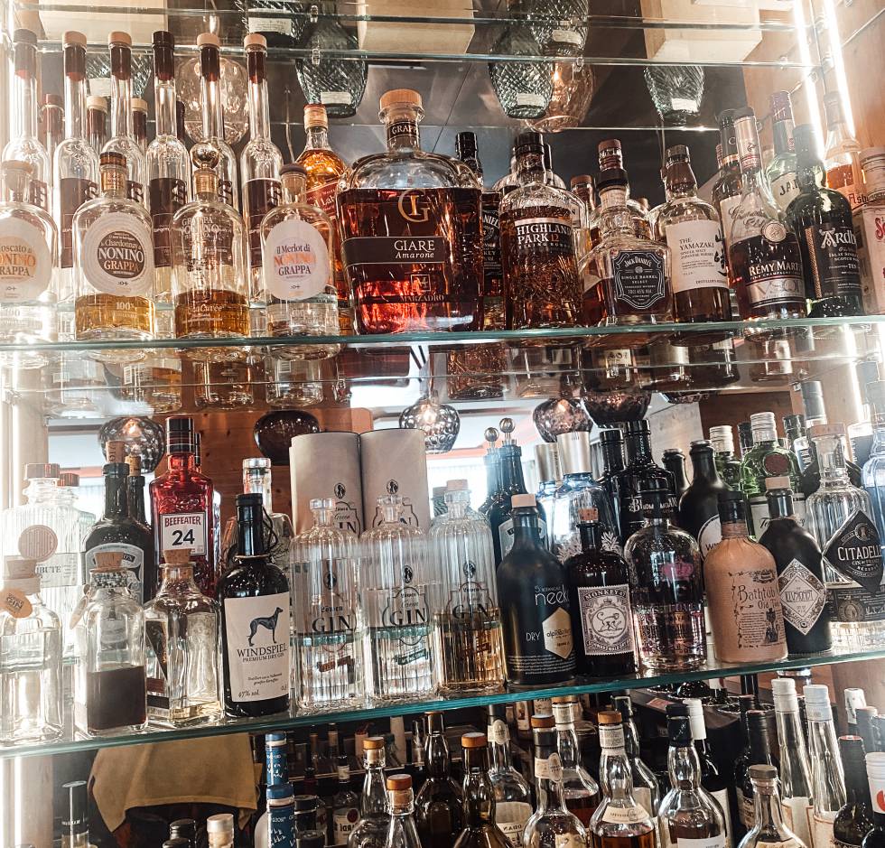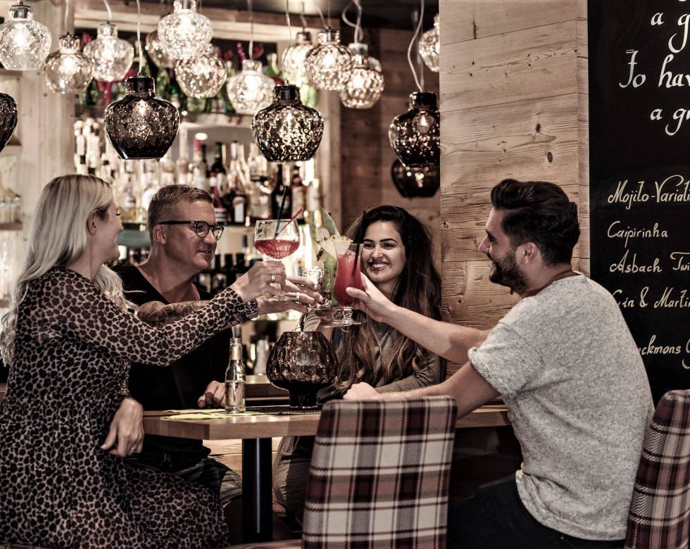 The ideal meeting place for a cozy get-together: our bar "Alpina Feuer" right next to the reception. Here, our guests (of legal drinking age) will find a wide selection of the finest spirits such as gin and whiskey, beer and wine. Our insider tip for a relaxing end to the day: a glass of Zillertaler Gin from the Stiegenhaushof. To your health!