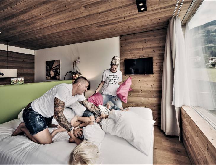 Sliding, swimming, splashing, laughing, sunbathing, cuddling: In the swimming and spa area "Woody's" for the whole family, the swimming fun is infinite.