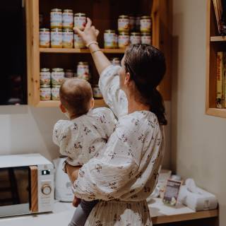 Melkvoer, pap, fruitpulp: de babyvoeding van het kwaliteitsmerk Hipp zorgt voor een uitgebalanceerde voeding voor peuters. In onze babyhoek is een grote keuze beschikbaar, op bepaalde tijden maakt ons keukenteam graag een verse pap voor uw goudschat.